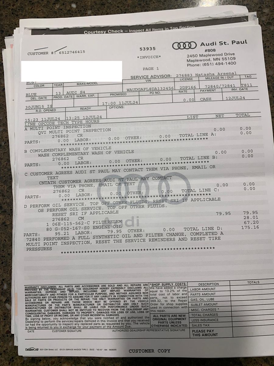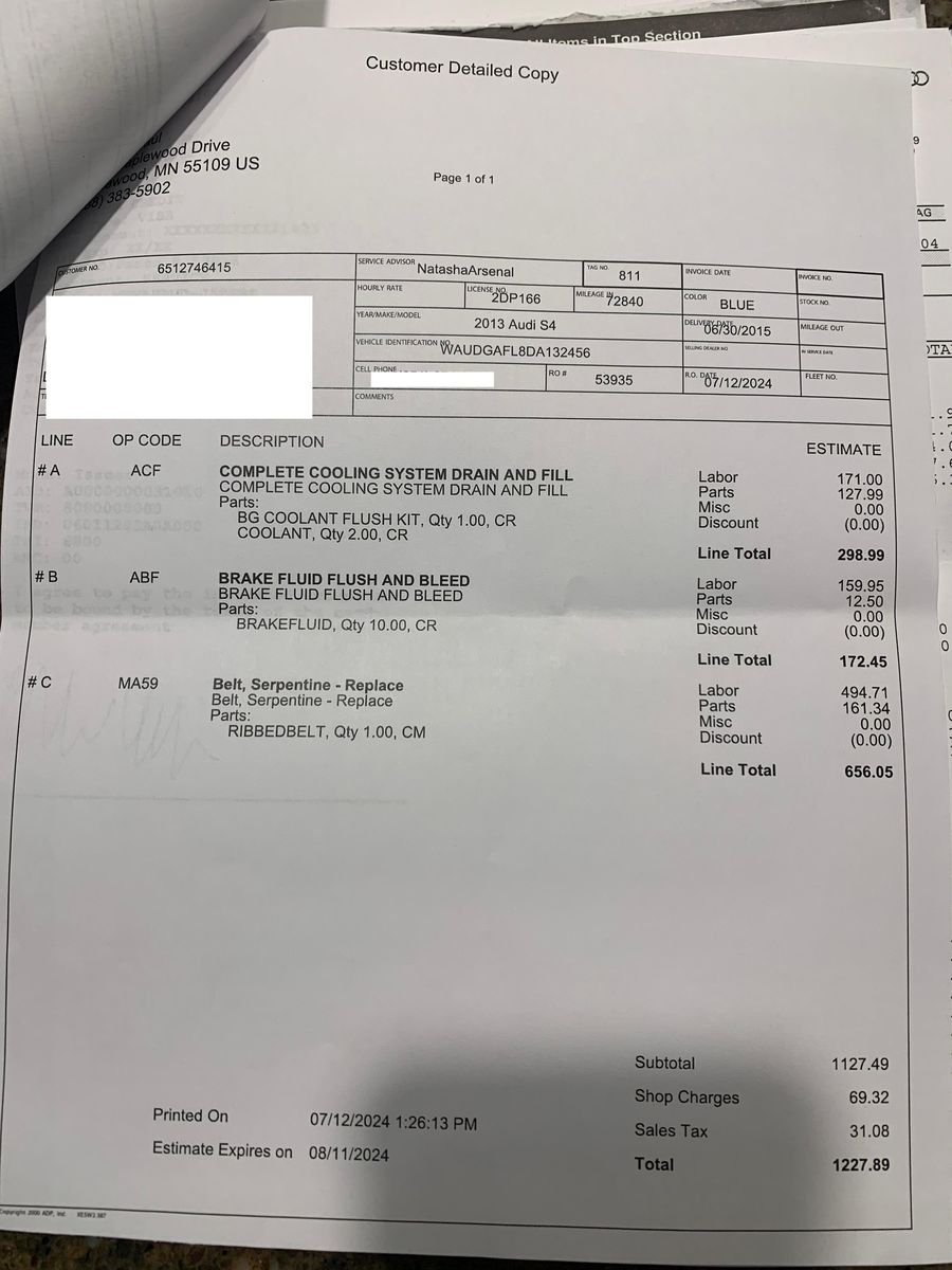 July 2024 (72,940 miles): Serpentine belt replaced, brake fluid and coolant flushed