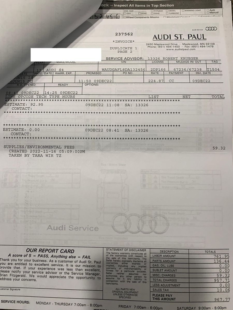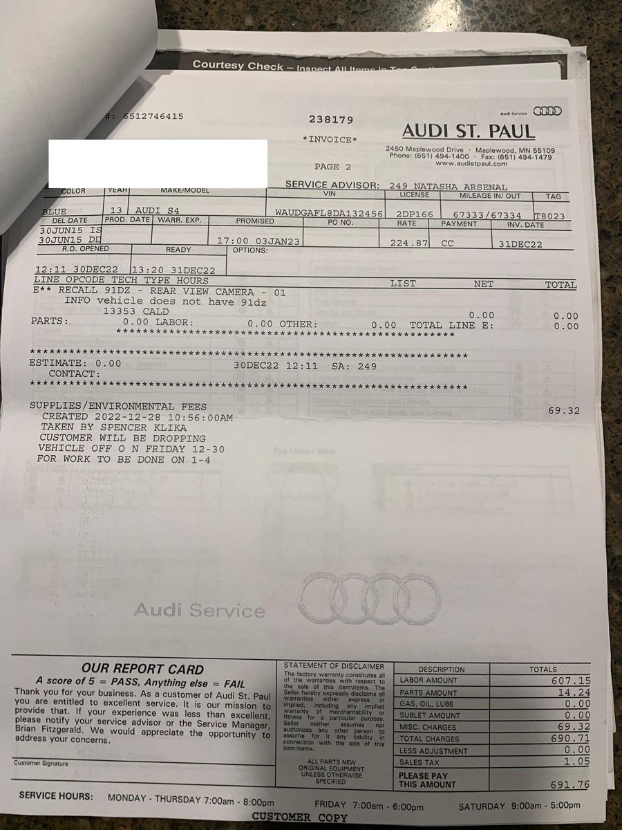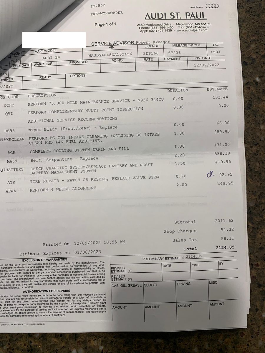 January 2021 (64,546 miles): Computer reprogrammed, brake fluid flushed