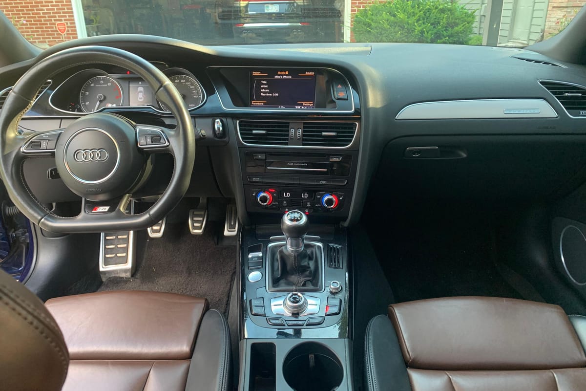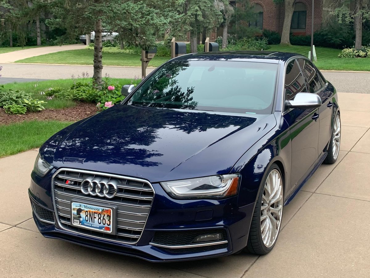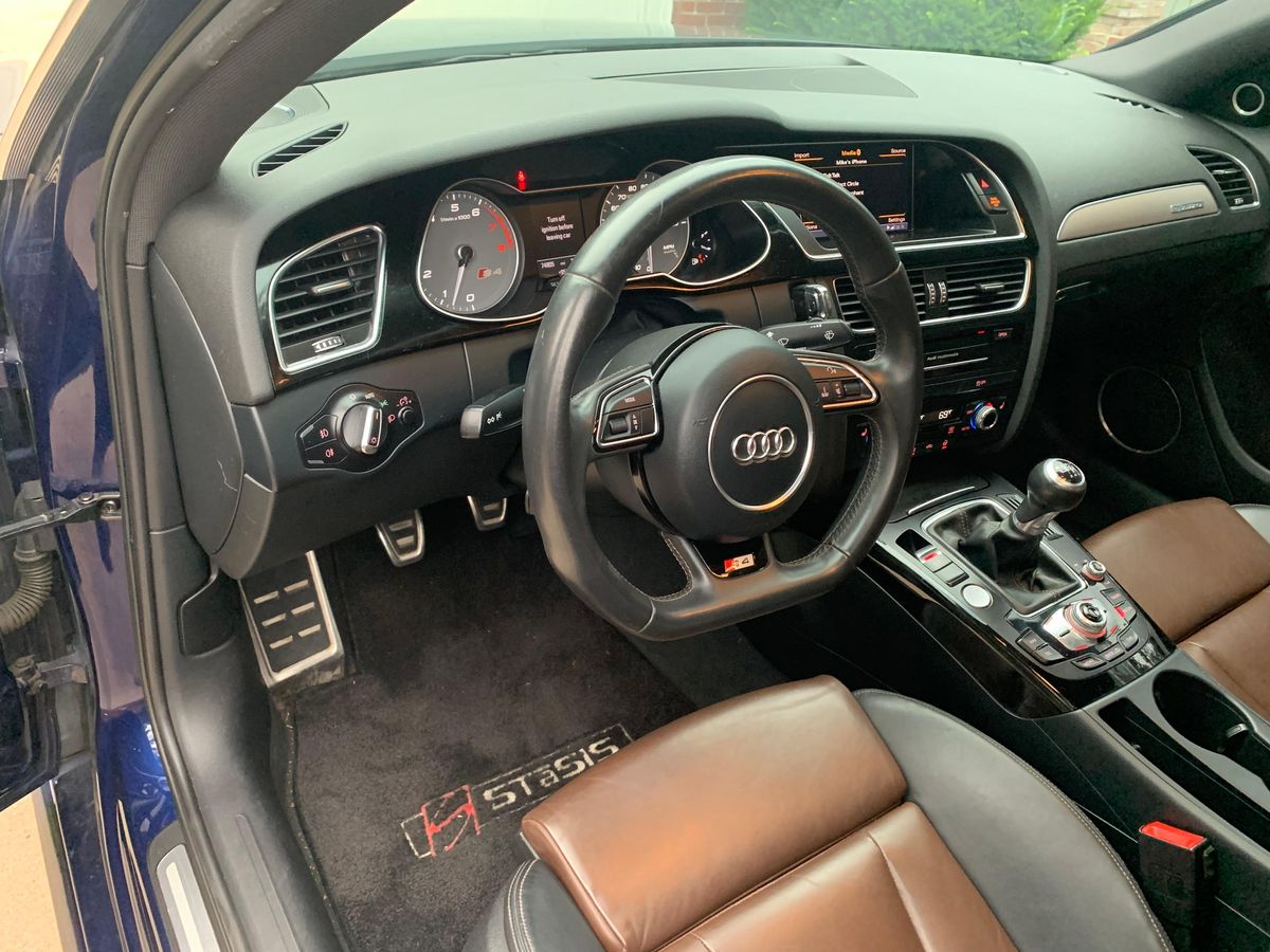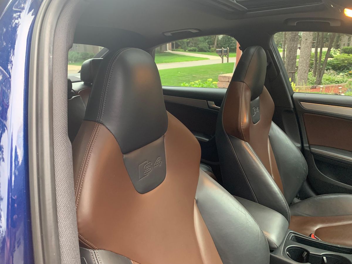 THIS… is a 2013 Audi S4 Premium Plus, finished in Estoril Blue Crystal Effect with a Chestnut Brown and black interior.