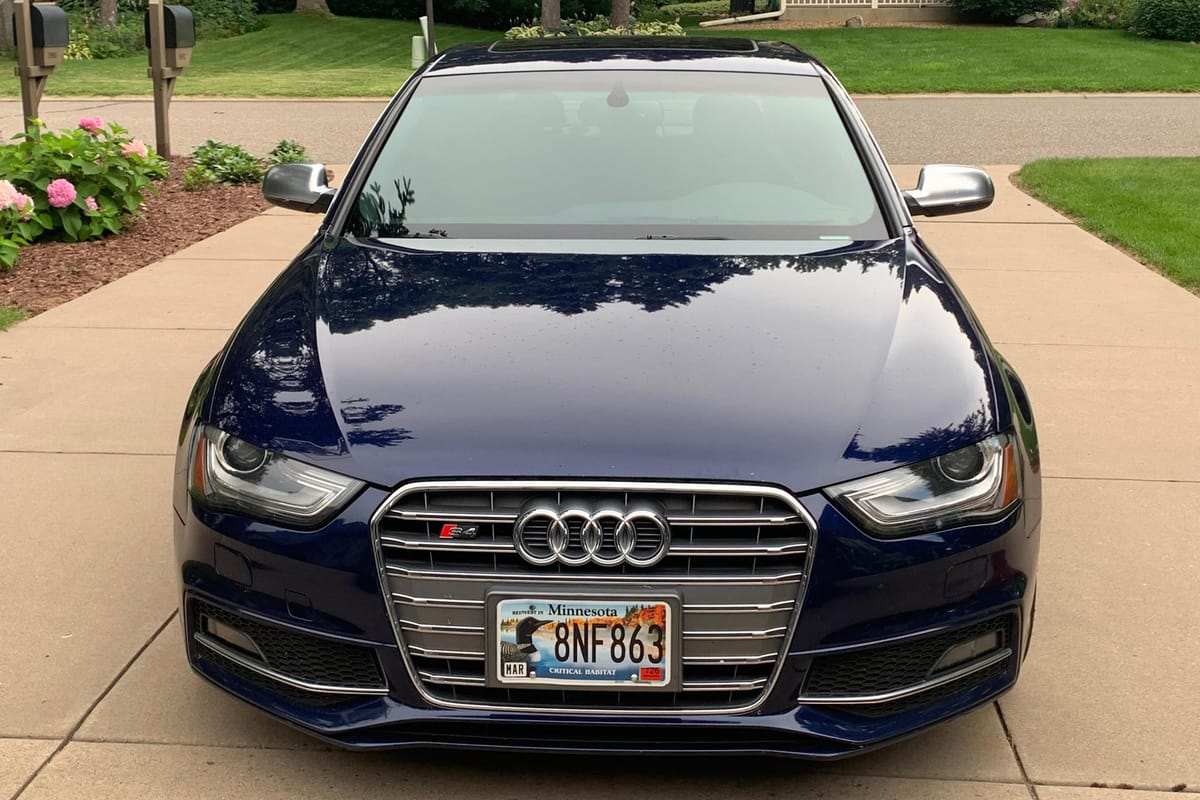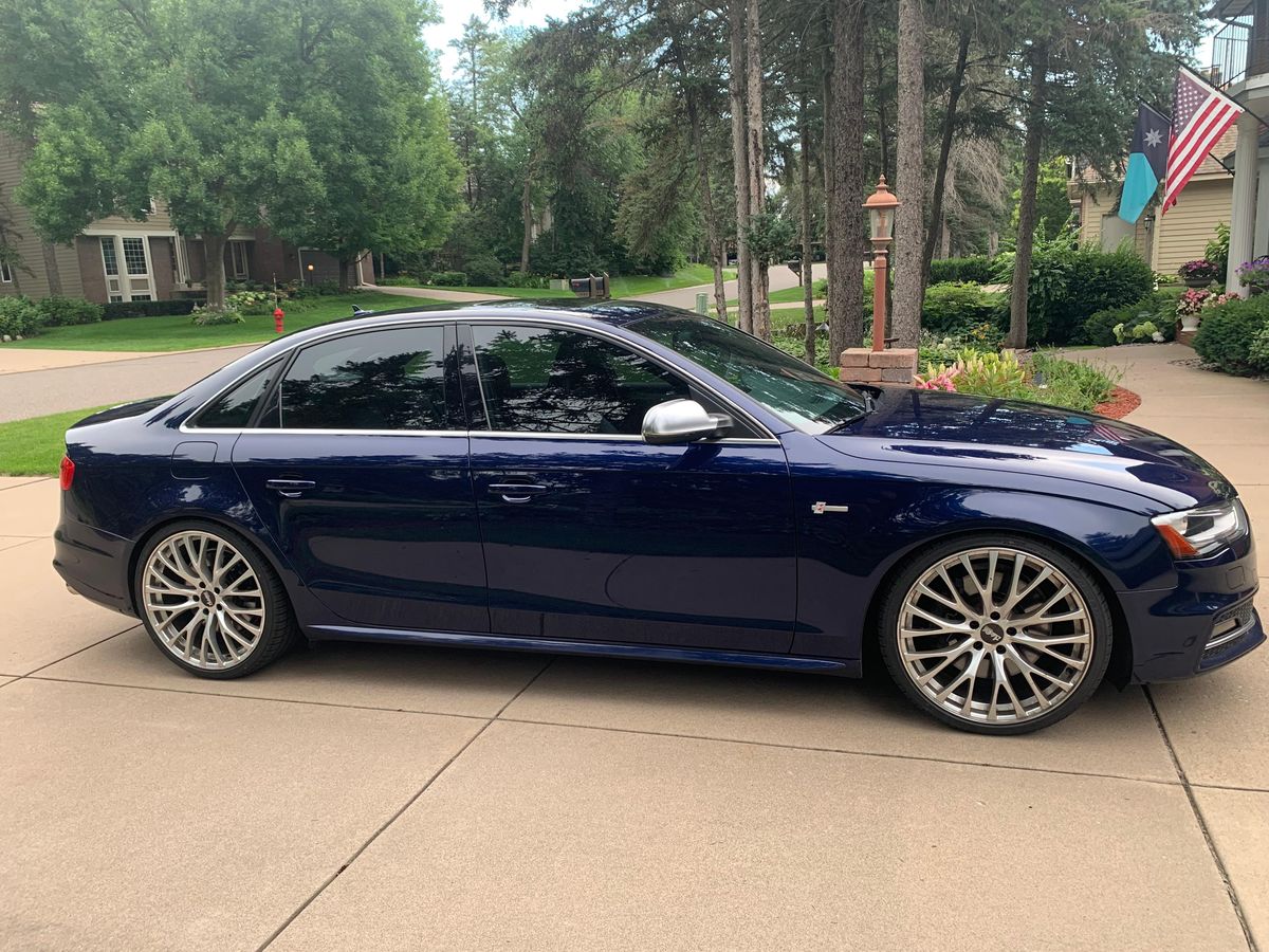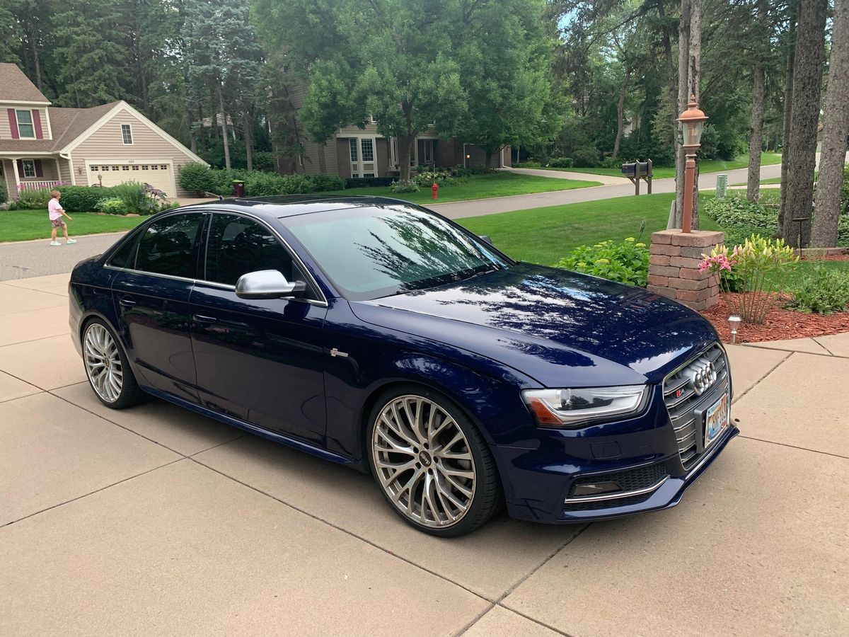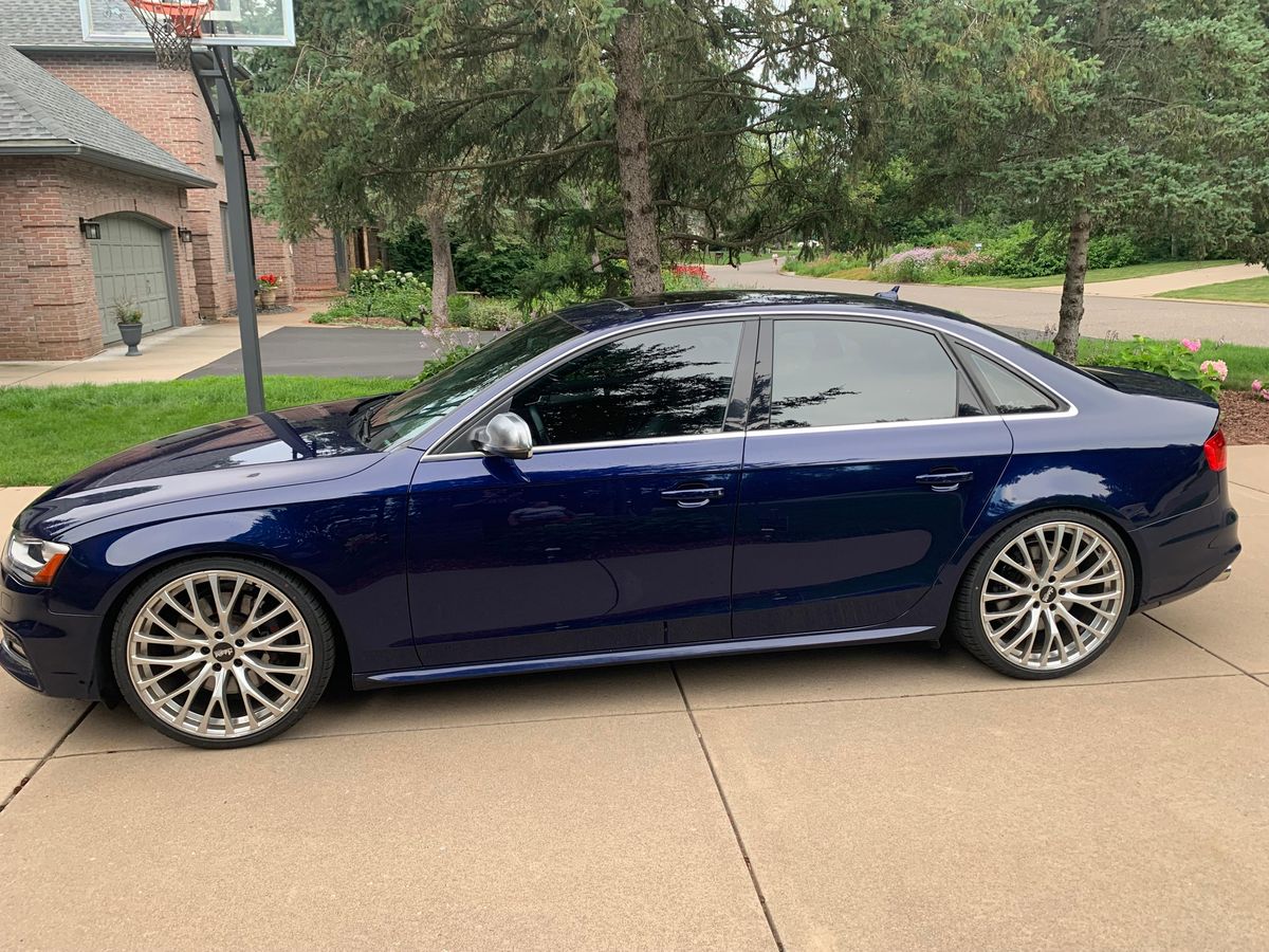 THIS… is a 2013 Audi S4 Premium Plus, finished in Estoril Blue Crystal Effect with a Chestnut Brown and black interior.