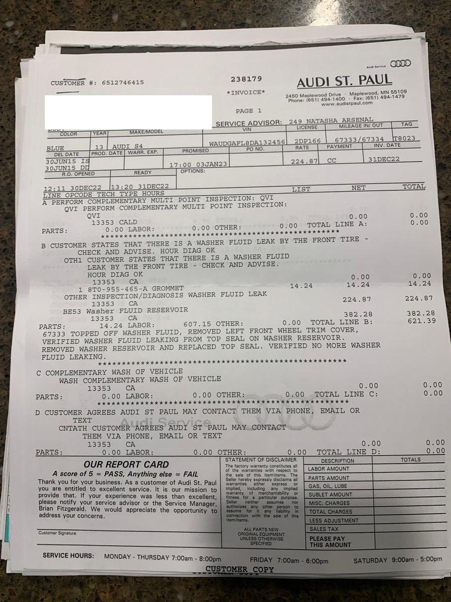 December 2022 (67,333 miles): Washer fluid reservoir replaced